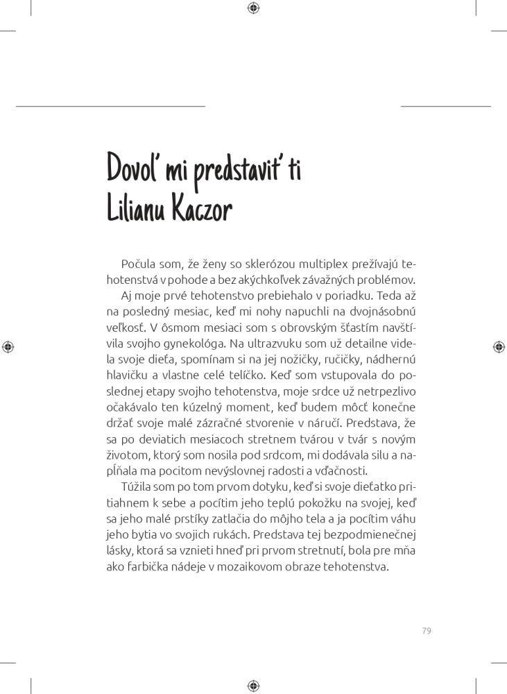 Presne to sa udialo aj autorke tejto knihy. Mladej žene, ktorá mala pred sebou celý život – plány, sny, ciele. Až kým jej lekár nepovedal slová, ktoré ju zasiahli ako blesk: Skleróza multiplex. Prišiel strach, hnev, slzy. Prišli otázky bez odpovedí. A hlavne – prišla pochybnosť, či ešte môže niekedy žiť svoj život naplno.
